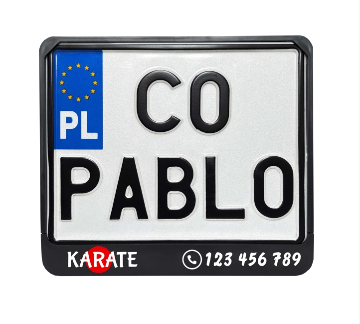 Wykonujemy ramki rejestracyjne z własnym nadrukiem, logo firmy, nazwą marki, adresem strony www, numerem telefonu, hasłem reklamowym lub dowolnym tekstem.