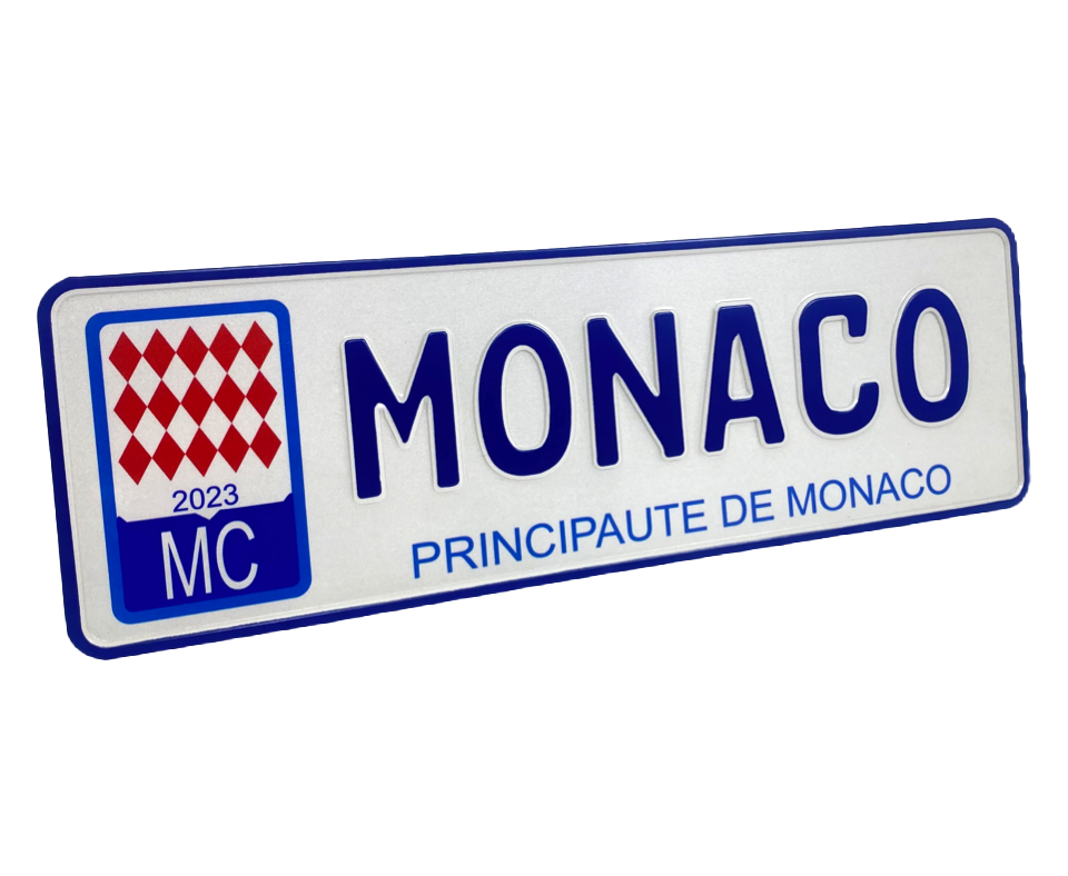 Tablica rejestracyjna Aluminiowa, MONACO, Tłoczona, Odblaskowa - 340 x 112 mm