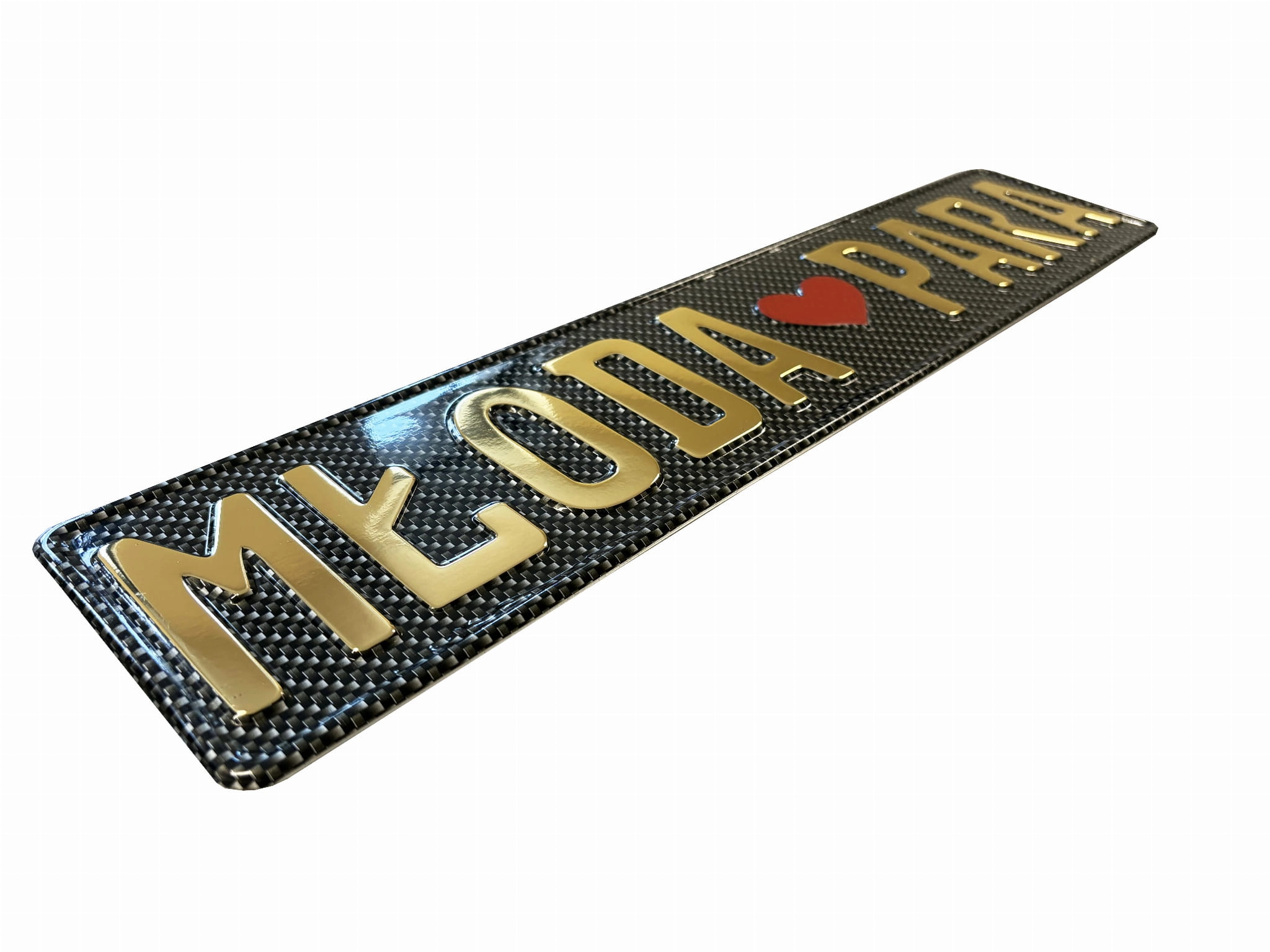 Wyjątkowa, tłoczona tablica ślubna z eleganckim napisem „MŁODA ♥ PARA”.