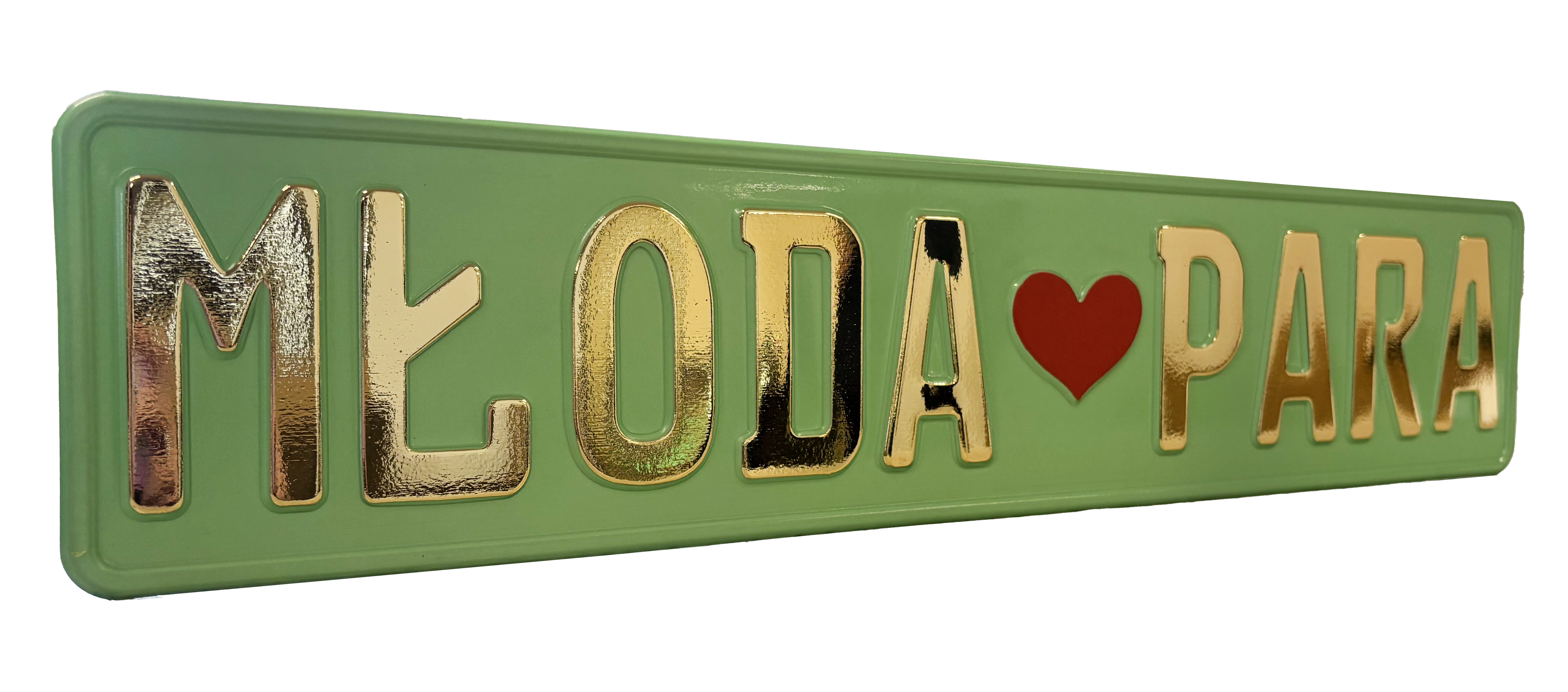 Tablica Ślubna „MŁODA ♥ PARA” – Tłoczona | Różne Kolory | 520x112mm
